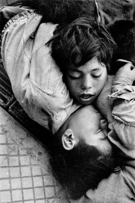 In Santiago there is a vast population of vagabond children who beg in the parks, sleep anywhere they can, forming an independant sort of tribe in the middle of the city with their own language, customs, etc. They work with older men who use them for begging, teaching them the routine and habits and crime which is their only future. The kids are shy of the poor houses, because they are badly treated and fed. Often people give them money and food. They gather in clans, often run by older boys who holda homosexual hold over them. On the whole the street is fun for them, and they prefer that to the safety of state institutions.